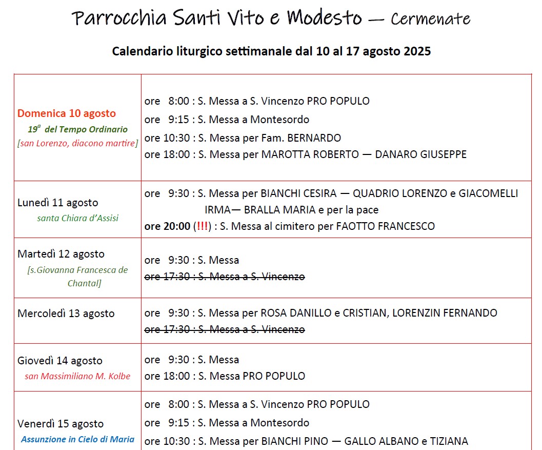 Santi Vito e Modesto è l’attuale parrocchia, e di essa si fa menzione per la prima volta nel 1297.