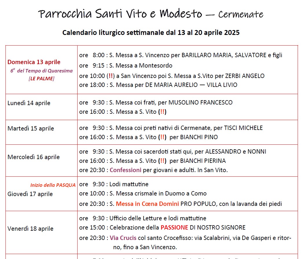 Categoria: CALENDARIO LITURGICO