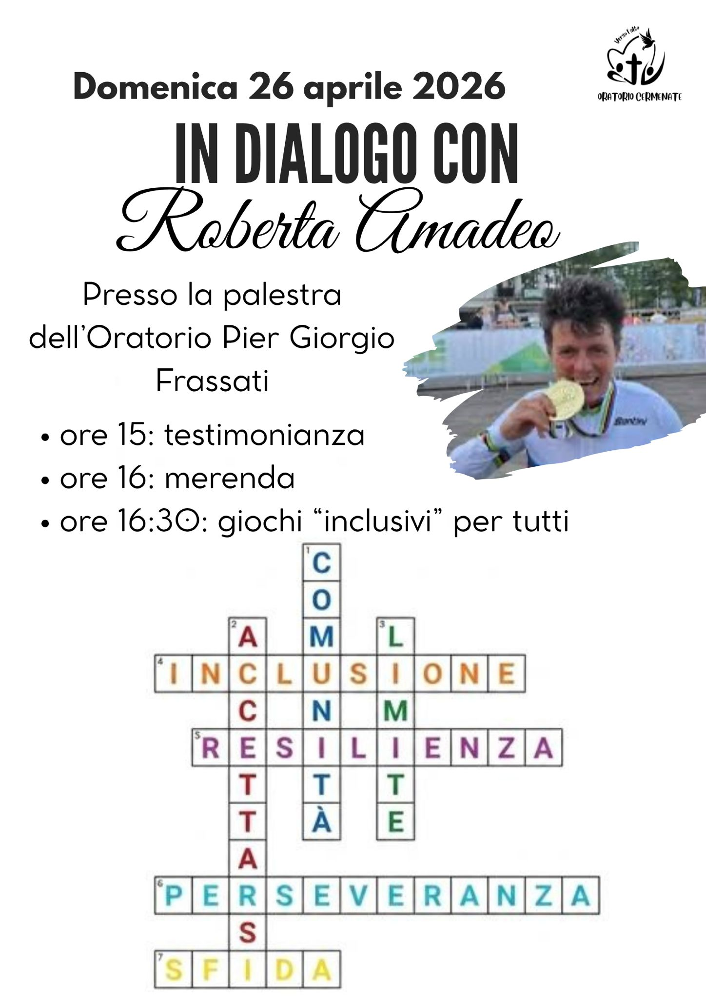 Un pomeriggio in simpatico dialogo con la campionessa mondiale “nostrana” di Hanbyke, Roberta Amadeo. Un’occasione per conoscere e poi imitare chi non ha paura di affrontare la fatica per vivere “verso l’Alto” e non si è sdraiato per vivacchiare. Un pomeriggio per ragazzi e giovani… di tutte le età! Domenica 26 aprile in oratorio.