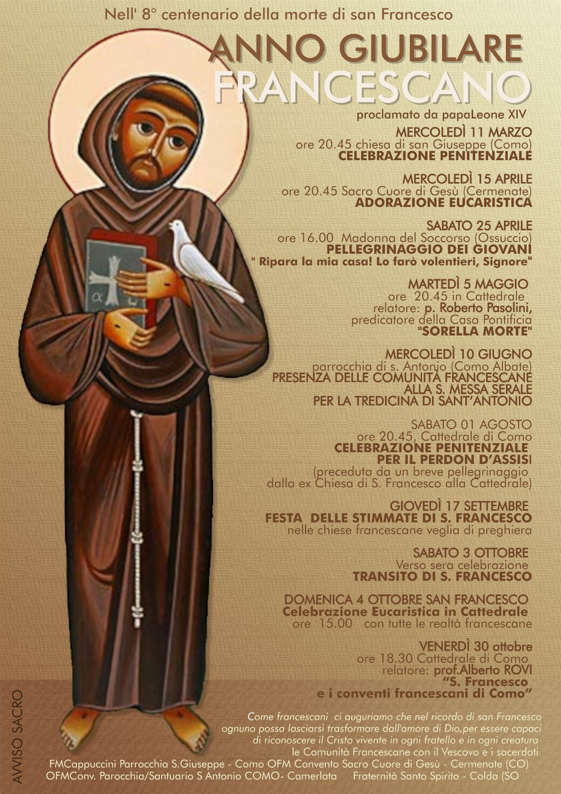Ecco la locandina che riporta gli eventi del giubileo francescano nella nostra Diocesi.